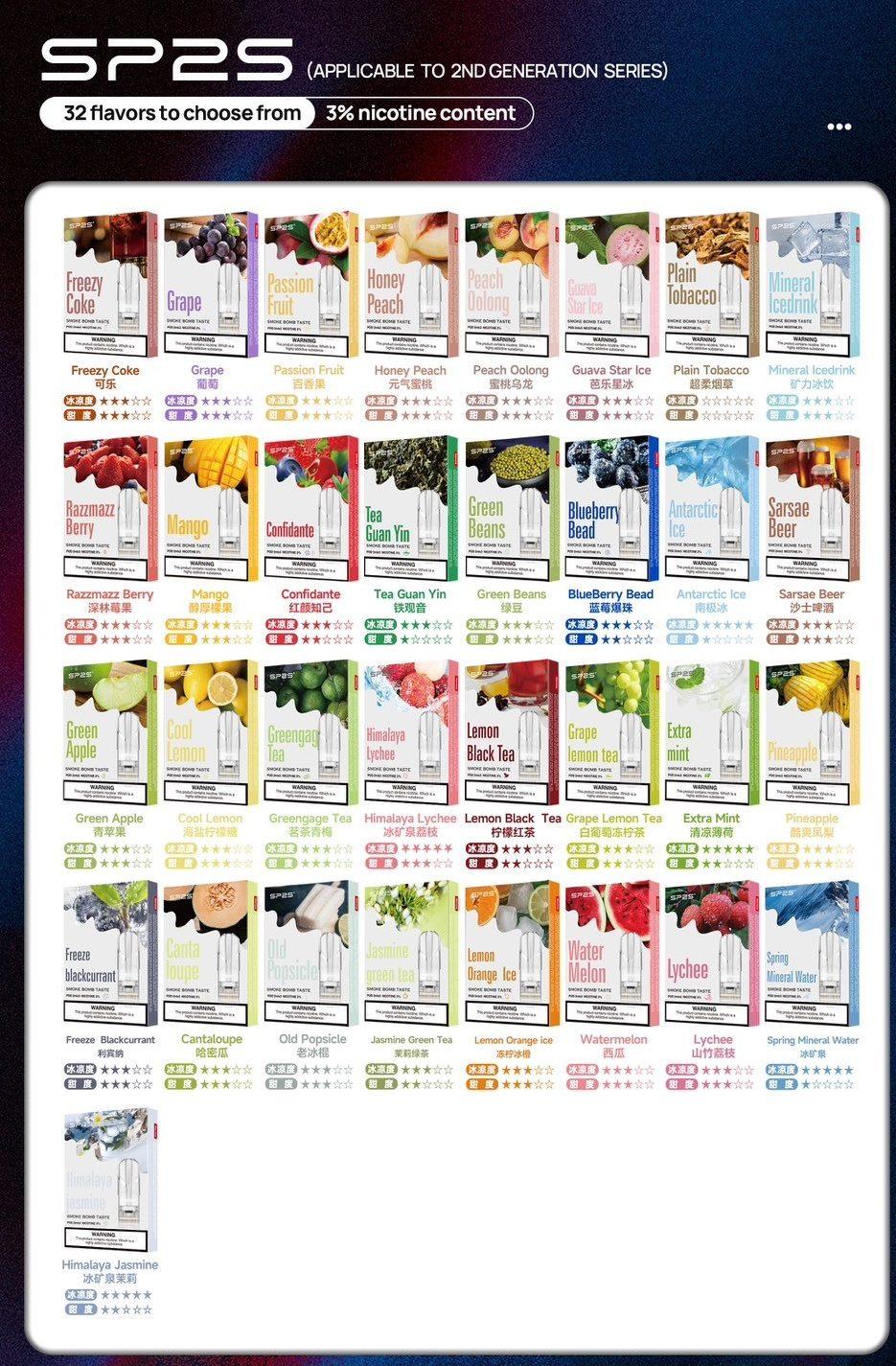 SP2蒐集使用者的口味推薦,讓SP2S的煙彈廣受好評,滿足不同偏好的需求